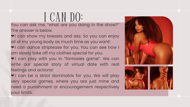 I can be your FRIEND or LOVER you decide! I love to meet new people and can discuss almost every topic for hours. Also, I am a good listener, so you can say me everything you want. I can discuss everything connected to sex too!